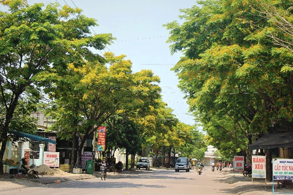 Một góc con đường hoa sưa ở TP. Tam Kỳ
