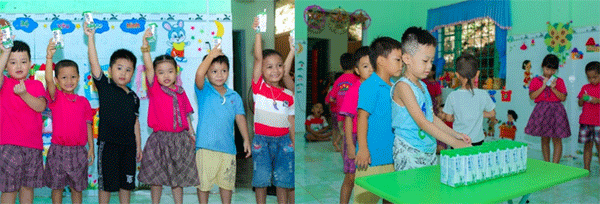 Thế nhưng, từ ngày 1/6 vừa qua, niềm vui đã đến vớicác con của chị Thu cũng như hàng nghìn gia đình khác tại 6 huyện miền núi của tỉnh gồm Bắc Trà My, Nam Trà My, Đông Giang, Nam Giang, Tây Giang, Phước Sơn, khi hơn 33.000 học sinh bậc mầm non và tiểu học khó khăngiờ đây sẽ được uống sữa miễn phí thông qua chương trình Sữa học đường. Theo đó, cả 5 ngày trong tuần khi đến lớp, các em đều được uống một hộp sữa tươi 180ml tiệt trùng do Vinamilk cung cấp, chất lượng theo các quy định và tiêu chuẩn của Bộ Y tế.