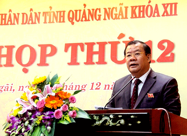 Phó Chủ tịch Thường trực UBND tỉnh Quảng Ngãi Nguyễn Tăng Bính báo cáo về hoạt động chỉ đạo, điều hành tình hình kinh tế - xã hội, quốc phòng an ninh năm 2018 và kế hoạch phát triển năm 2019.
