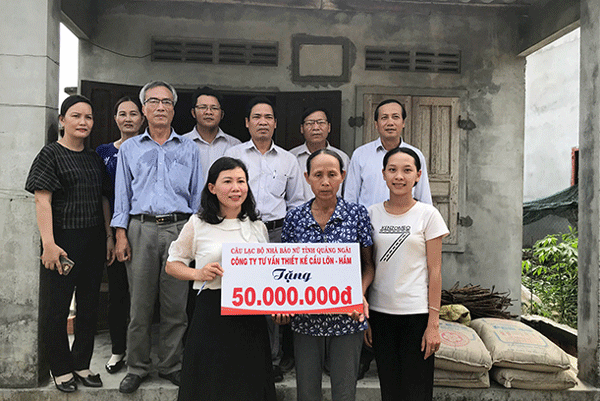 Tại buổi lễ trao tiền hỗ trợ cho chị Nhung, Chủ tịch Hội Nhà báo tỉnh Quảng Ngãi Hà Minh Đích cảm ơn sự quan tâm hỗ trợ của Công ty Cổ phần tư vấn thiết kế Cầu Lớn - Hầm, biểu dương sự năng động của Câu lạc bộ nhà báo nữ tỉnh trong việc làm cầu nối, giúp đỡ gia đình phụ nữ nghèo, đồng thời mong muốn UBND xã Đức Minh, huyện Mộ Đức, đơn vị đảm nhận việc xây nhà cho chị Ngô Thị Kim Nhung bằng tinh thần trách nhiệm của địa phương chỉ đạo các hội, đoàn thể theo dõi, giám sát và vận động hội viên đóng góp ngày công, kinh phí để xây dựng ngôi nhà hoàn thành đúng tiến độ và khang trang hơn.