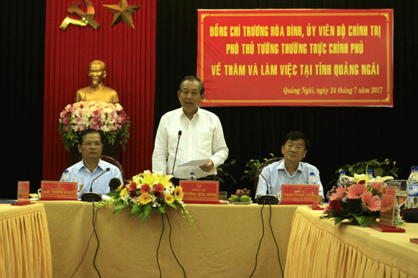 Ngày 24/7, Phó Thủ tướng thường trực Chính phủ Trương Hòa Bình đã có chuyến thăm và làm việc với tỉnh Quảng Ngãi về thực hiện các chính sách giảm nghèo, dân tộc, miền núi.