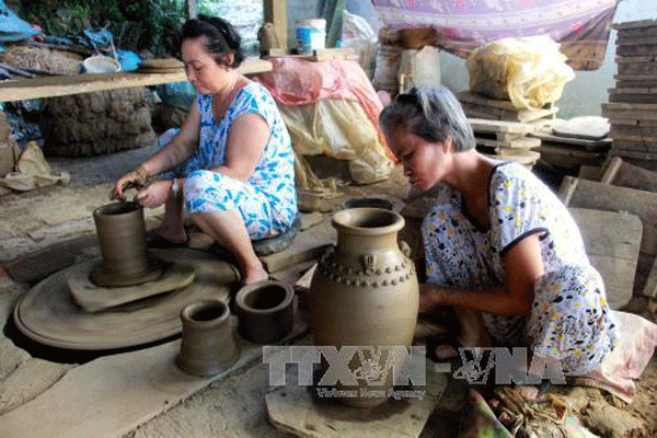 Sản xuất gốm tại làng gốm Mỹ Thiện. Ảnh: Phước Ngọc/TTXVN