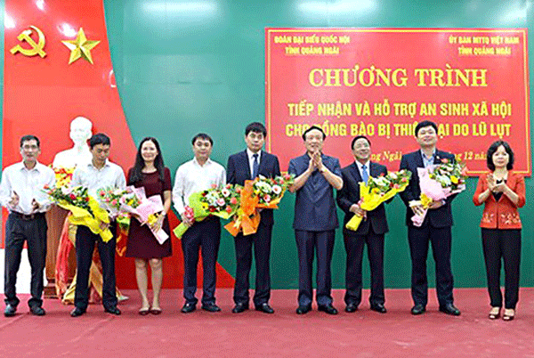Tham gia chương trình này các ngân hàng, các doanh nghiệp trong và ngoài tỉnh đã trao tặng số tiền gần 30 tỷ đồng cho Ủy ban MTTQVN tỉnh. Trong đó, Công ty Lọc Hóa dầu Bình Sơn (BSR) - đơn vị quản lý, vận hành nhà máy lọc dầu Dung Quất đã hỗ trợ 14 tỷ 330 triệu đồng; Ngân hàng thương mại CP Công thương tại Đà Nẵng 10 tỷ đồng; Ngân hàng Nông nghiệp và Phát triển nông thôn Việt Nam 4 tỷ đồng; Công ty CP đầu tư phát triển và thương mại Bình Minh miền Trung 500 triệu đồng; Công ty CP Đầu tư và Công nghệ Bắc Hà 250 triệu đồng và Bộ Ngoại giao 80 triệu đồng. Tại buổi tiếp nhận, tỉnh Quảng Ngãi cũng đã trao tiền hỗ trợ cho 10 gia đình nghèo ở TP Quảng Ngãi và huyện Sơn Tịnh có nhà bị hư hại nặng trong đợt lũ lụt vừa qua, mỗi gia đình 50 triệu đồng.