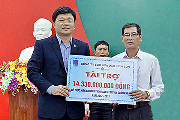 Được biết, Công ty Lọc Hóa dầu Bình Sơn (BSR)- đơn vị quản lý, vận hành nhà máy lọc dầu Dung Quất là đơn vị đóng trên địa bàn Quảng Ngãi, hàng năm Công ty BSR đều dành khoảng 40 tỷ để làm công tác ASXH và kể từ khi chính thức đi vào vận hành thương mại đến nay tổng số tiền cho công tác này lên đến trên 330 tỷ đồng để các địa phương trong và ngoài tỉnh xây dựng trường học, trạm y tế, nhà trẻ, chợ và đường giao thông nông; xây dựng nhà ở cho các gia đình chính sách, gia đình nghèo; hỗ trợ quỹ đền ơn đáp nghĩa, khắc phục thiên tai, cứu trợ nhân đạo, khuyến học khuyến tài...