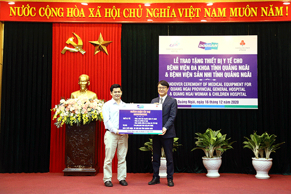 Theo đó, Bệnh viện Đa khoa tỉnh Quảng Ngãi tiếp nhận gói thiết bị y tế gồm 01 bộ tủ an toàn sinh học cấp 3 hiệu ESCO được nhập khẩu từ Indonesia và 10 bộ đặt nội khí quản có Camera hiệu Infinium USA có tổng trị giá 1,22 tỉ đồng. Bệnh viện sản Nhi tỉnh được trao tặng 01 tủ làm ấm máu và dịch truyền, 3 bộ máy đo SP02 và 10 bộ đèn chiếu điều trị vàng da trị giá 510 triệu đồng. Tổng mức hỗ trợ cho cả 2 bệnh viện là 77,359 USD (tương đương 1,787 tỉ đồng).
