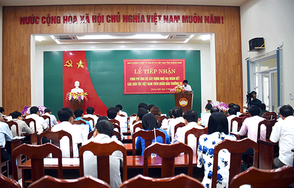 Ngay sau lễ tiếp nhận, Ủy ban MTTQ Việt Nam tỉnh Quảng Ngãi sẽ chuyển toàn bộ số kinh phí này về tài khoản Ban Thường trực Ủy ban Trung ương MTTQ Việt Nam để công trình “Nhà Đại Đoàn Kết các dân tộc Việt Nam trên quần đảo Trường Sa” sớm được xây dựng hoàn thành, đáp ứng yêu cầu, nguyện vọng của nhân dân cả nước hướng về Trường Sa, hướng về biển đảo thân yêu.