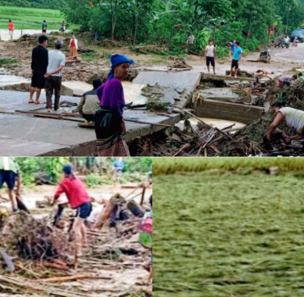 Theo thống kê sơ bộ, 2 xã nói trên có hàng chục ha lúa bị thiệt hại và đường xá bị sạt lở.