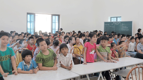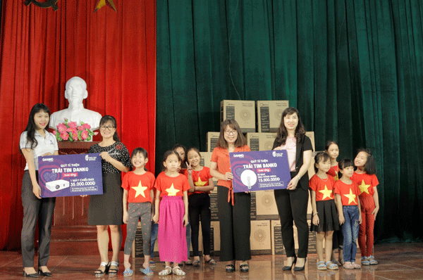 Tại đây, Tập đoàn Danko đã trao tặng cho Nhà trường một máy chiếu SMX trị giá 35 triệu đồng cùng 25 quạt treo tường Midea trị giá 15 triệu đồng.