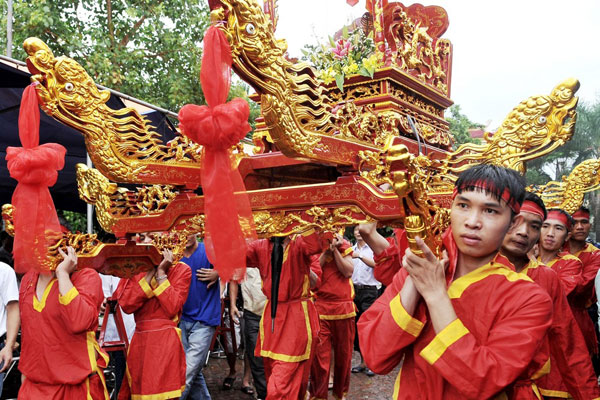Sau một năm làm việc vất vả, Yên Sơn lại mở lễ hội của làng trân trọng đón tiếp các tầng lớp nhân dân ở Ngân Đài Minh Đức, địa phương kết chạ anh em từ năm 1818. Theo hương ước của hai làng: Trong những ngày xuân, mọi người đến đình, đến chùa ôn lại công đức của vị thành hoàng làng, cầu mong cho dân làng một năm mới làm ăn thịnh vượng; nhân dân Yên Sơn lại có dịp gặp gỡ, trao đổi, thăm hỏi, giao duyên với nhân dân Ngân Đài Minh Đức địa phương kết chạ anh anh em.