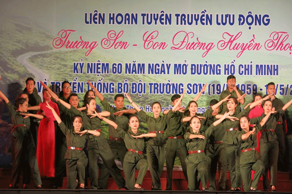 Diễn ra từ ngày 10 đến 15/5 tại tám tỉnh, nơi có tuyến đường huyền thoại Trường Sơn - Hồ Chí Minh đi qua: Bình Phước, Nghệ An, Hà Tĩnh, Quảng Bình, Gia Lai, Kon Tum, Quảng Nam và Thừa Thiên Huế, Liên hoan tuyên truyền lưu động “Trường Sơn - Con đường huyền thoại” do Bộ Văn hóa, Thể thao và Du lịch tổ chức có sự tham gia của 32 đội TTLĐ với gần 1.000 tuyên truyền viên, diễn viên, nghệ sĩ, nhạc công. Chương trình được chia làm 2 tuyến. Ở tuyến 1, các đội TTLĐ biểu diễn tại các tỉnh Nghệ An, Hà Tĩnh và Quảng Bình. Tuyến 2, các đội biểu diễn tại Bình Phước, Gia Lai, Kon Tum và Quảng Nam, rồi tất cả tập trung về Thừa Thiên Huế biểu diễn, chuẩn bị cho đêm tổng kết, bế mạc vào tối 15/5 tại A Lưới.