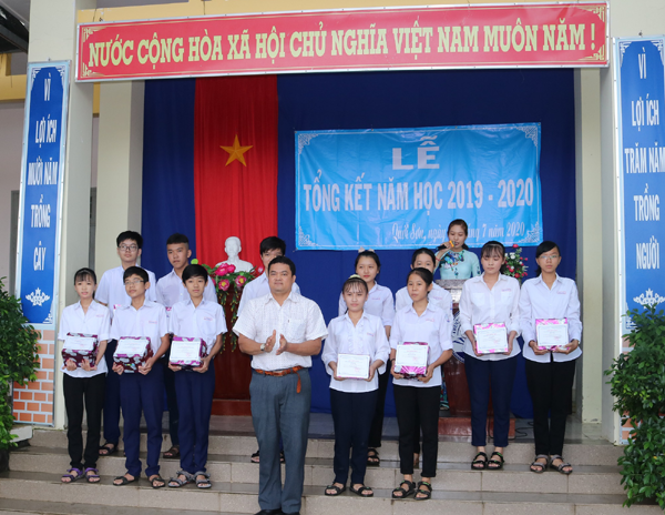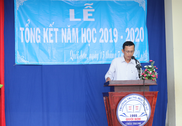 Thay mặt Ban giám hiệu trường Quới Sơn, Hiệu trưởng Huỳnh Khắc Trung cho biết những món quà tinh thần cũng như vật chất trong buổi trao tặng này có ý nghĩa vô cùng quan trọng, truyền thêm nghị lực cho những em học sinh cơ hàn có điều kiện trên con đường đến với cánh cổng kho tàng tri thức.