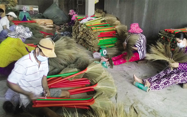 Hiện nay, không chỉ cơ sở của gia đình anh Nhân mà các cơ sở bó chổi ở làng nghề “tăng tốc” chuẩn bị nguồn hàng Tết, mỗi ngày làng nghề sản xuất 45.000-50.000 cây chổi thành phẩm.