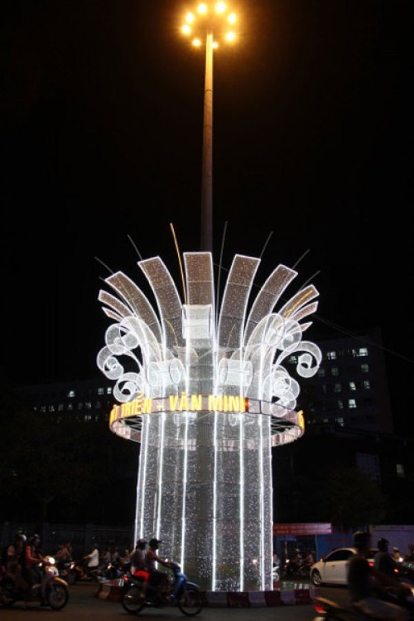 Khối đèn hoa cách điệu tại vòng xoay Công Viên Lưu Hữu Phước Thành phố Cần Thơ