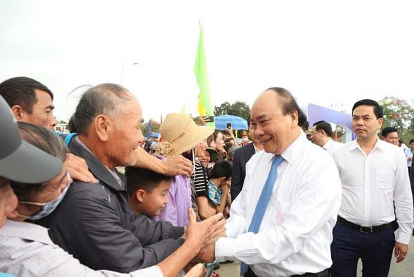 Thủ tướng Chính phủ Nguyễn Xuân Phúc bắt tay chia vui với người dân