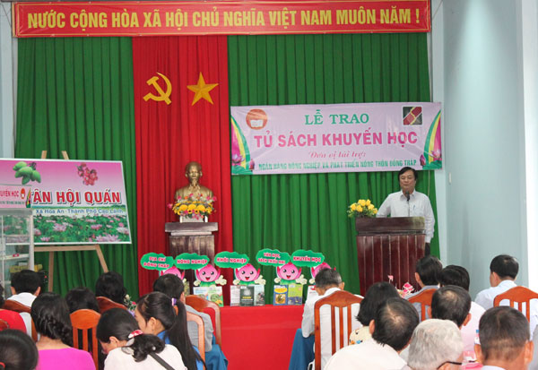 Bí thư Tỉnh ủy Đồng Tháp Lê Minh Hoan phát biểu tại lễ trao tủ sách khuyến học.