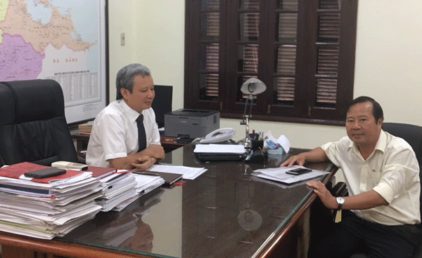 Ông Lê Trường Lưu - Ủy viên TW Đảng, Bí thư Tỉnh ủy tỉnh Thừa Thiên Huế (bìa trái) làm việc với phóng viên Tạp chí điện tử Văn hiến Việt Nam chủ đề liên quan đến việc từng bước khai thác tiềm năng, thế mạnh của Thừa Thiên Huế trong quá trình hội nhập và phát triển