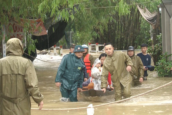 Lực lượng chức năng tỉnh Thừa Thiên - Huế hỗ trợ người dân bị mưa bão tìm nơi tránh trú an toàn