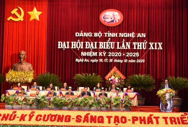 Thủ tướng Nguyễn Xuân Phúc phát biểu tại Đại hội Đảng bộ tỉnh Nghệ An lần thứ XIX (nhiệm kỳ 2020 - 2025)