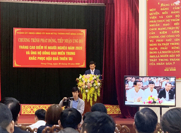 Tại lễ phát động, ông Vũ Duy Nghĩa - Chủ tịch UBND Thành phố Sông Công - đã phát động lời kêu gọi của Ủy ban MTTQ Việt Nam tỉnh Thái Nguyên và hưởng ứng kêu gọi của Đoàn Chủ tịch Ủy ban Trung ương MTTQ Việt Nam ủng hộ tháng cao điểm “Vì người nghèo” năm 2020 và ủng hộ nhân dân các tỉnh miền Trung khắc phục hậu quả mưa, lũ.