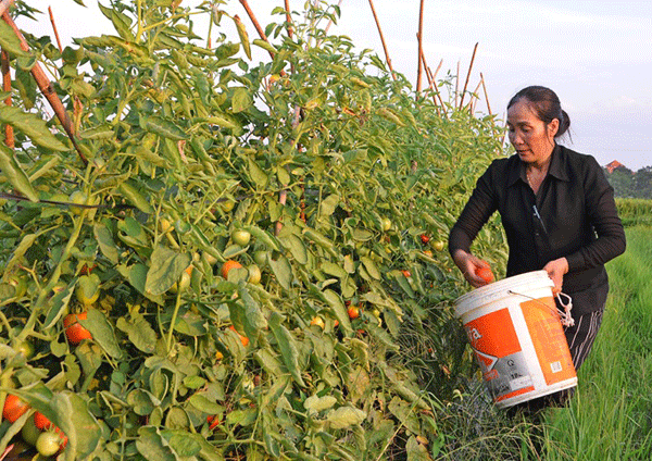 Nông dân Vĩnh Yên phát triển kinh tế bằng mô hình sản xuất rau, quả hữu cơ. Ảnh: Chu Kiều