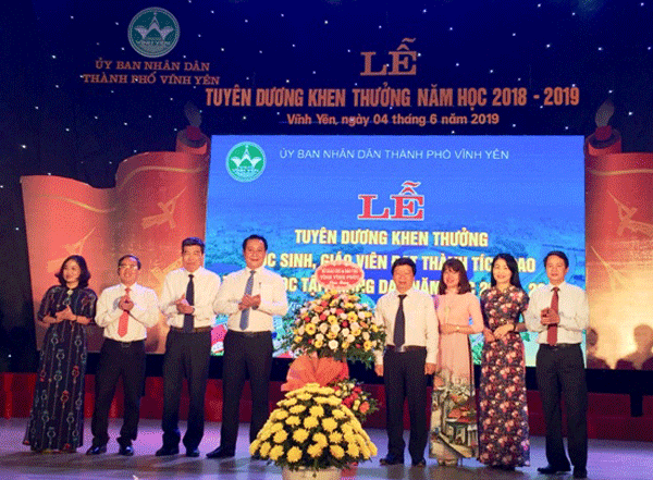 Tới dự có các đồng chí Phạm Hoàng Anh, Ủy viên Ban Thường vụ Tỉnh ủy, Bí thư thành phố Vĩnh Yên chỉ đạo buổi lễ; Nguyễn Minh Sơn, Phó Bí thư Thành ủy, Chủ tịch UBND thành phố; Nguyễn Xuân Trường, Phó Giám đốc Sở Giáo dục và Đào tạo Vĩnh Phúc; các đồng chí trong thường trực Thành ủy TP Vĩnh Yên; lãnh đạo Phòng Giáo dục và Đào tạo Vĩnh Yên; các giáo viên, học sinh có thành tích cao trong năm học 2018 - 2019.