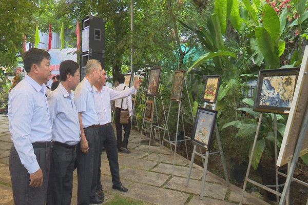 Triển lãm thu hút 122 tranh và 14 tượng của 13 họa sĩ thuộc Phân hội Mỹ thuật - Hội LHVHNT tỉnh. Chất liệu tạo nên các bức tranh khá đa dạng như: sơn dầu, sơn khắc, gò đồng, tranh kính, vải và đặc biệt là hệ thống 14 tượng gỗ mang tên “Thiếu nữ” của tác giả Lê Mạnh Hà - hội viên Hội Mỹ thuật Việt Nam được cách điệu với hình dạng lá sen.
