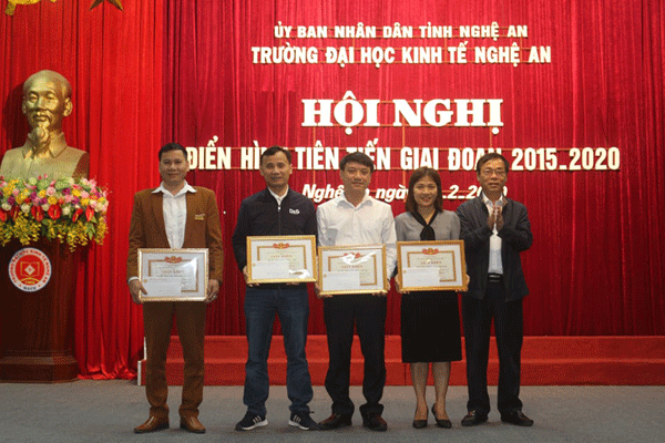 Hiệu trưởng Trường Đại học Kinh tế Nghệ An tặng Giấy khen cho cán bộ Trung tâm