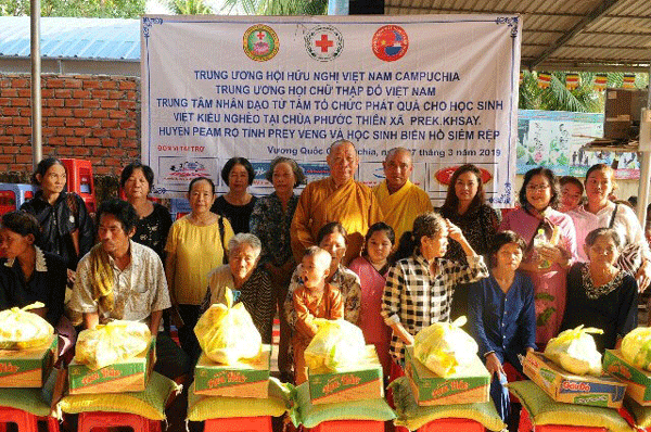 Theo đó, tại tỉnh Prey Veng (Campuchia) đoàn đã tổ chức đến thăm và trao hơn 400 phần quà cho người nghèo, học sinh và cúng dường chùa Phước Thiên tại xã Neak Loeung - huyện Peam Ror - tỉnh Prey Veng của nước Campuchia. Ngoài các hoạt động từ thiện tại tỉnh Prey Veng, đoàn cũng đã đến tỉnh Xiêm Riệp để trao tặng hơn 320 phần quà cho học sinh tại trung tâm Giáo dục từ thiện (Biển Hồ - Campuchia).