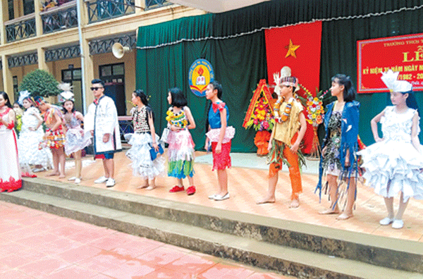 Tiết mục hóa trang của học sinh Trường THCS thị trấn Ngọc Lặc chào mừng Ngày Nhà giáo Việt Nam 20/11.