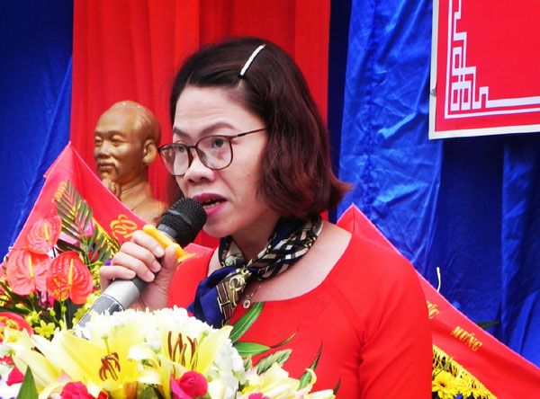 Cô giáo Chu Thị Dung - Hiệu trưởng phát biểu tại Lễ kỷ niệm 20 năm thành lập