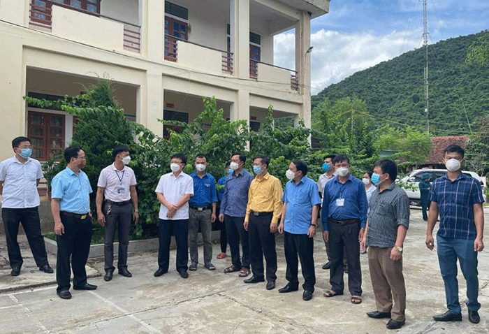 Ban chỉ đạo phòng chống dịch Covid-19 Nghệ An kiểm tra tại một khu cách ly. Ảnh: N.D