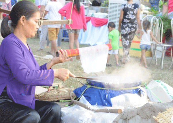 Tráng bánh tráng sẽ nghệ nhân được làm ngay tại Lễ hội.