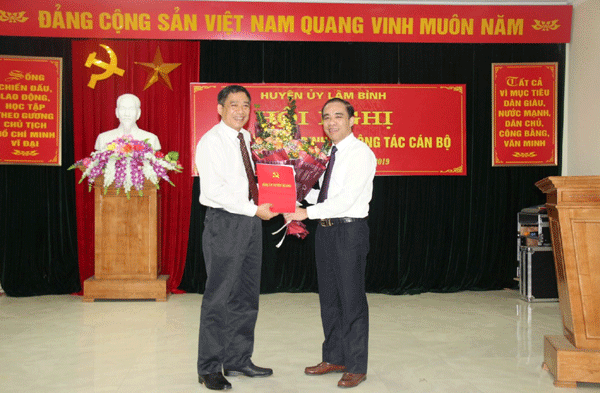 Tại hội nghị, đồng chí Trưởng Ban Tổ chức Tỉnh ủy Lê Tiến Thắng công bố Quyết định của Ban Thường vụ Tỉnh ủy đối với đồng chí Nguyễn Hồng Trang, Tỉnh ủy viên, Bí thư Huyện ủy, Chủ tịch HĐND huyện Lâm Bình thôi giữ chức Bí thư Huyện ủy Lâm Bình nhiệm kỳ 2015v - 2020, điều động đến nhận công tác tại Ban Tổ chức Tỉnh ủy và bổ nhiệm có thời hạn 5 năm giữ chức Phó Trưởng Ban Tổ chức Tỉnh ủy.