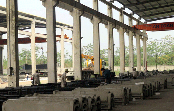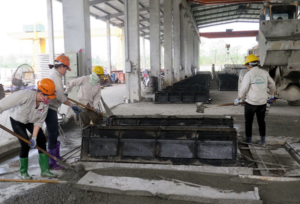 Công ty TNHH Đầu tư và Xây dựng Thành Hưng đang sản xuất cấu kiện kênh mương bằng bê tông đúc sẵn để cung cấp cho các địa phương.