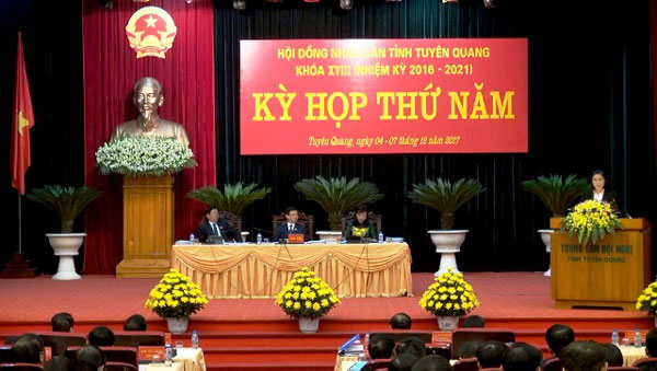 Tại kỳ họp, HĐND tỉnh Tuyên Quang đã xem xét các báo cáo về kết quả 10 tháng và ước thực hiện cả năm 2017 dự toán thu ngân sách nhà nước, chi ngân sách địa phương, kinh phí Trung ương ủy quyền, kinh phí của các bộ, ngành Trung ương cấp theo ngành dọc, kinh phí viện trợ và tình hình sử dụng các quỹ do tỉnh quản lý năm 2017 trên địa bàn tỉnh; báo cáo của UBND tỉnh về kết quả giải quyết ý kiến, kiến nghị của cử tri trước và sau kỳ họp thứ 4 HĐND tỉnh khóa XVIII; báo cáo của Viện trưởng Viện KSND tỉnh, Chánh án TAND tỉnh, Cục Thi hành án dân sự tỉnh về kết quả thực hiện nhiệm vụ năm 2017, phương hướng nhiệm vụ năm 2018; các báo cáo của Thường trực HĐND tỉnh Tuyên Quang về công tác tổng hợp ý kiến, kiến nghị của cử tri, giám sát việc giải quyết ý kiến, kiến nghị của cử tri; các báo cáo thẩm tra, báo cáo giám sát của các ban HĐND tỉnh; thông báo hoạt động của Ủy ban MTTQ tỉnh tham gia xây dựng, củng cố chính quyền; báo cáo của Đoàn đại biểu Quốc hội tỉnh về kết quả kỳ họp thứ 4 và hoạt động của Đoàn đại biểu Quốc hội tỉnh tại kỳ họp.