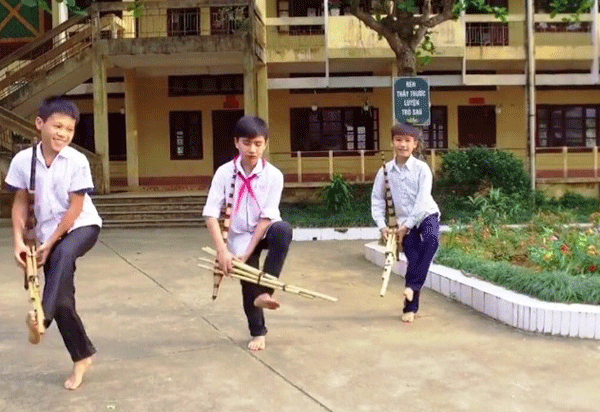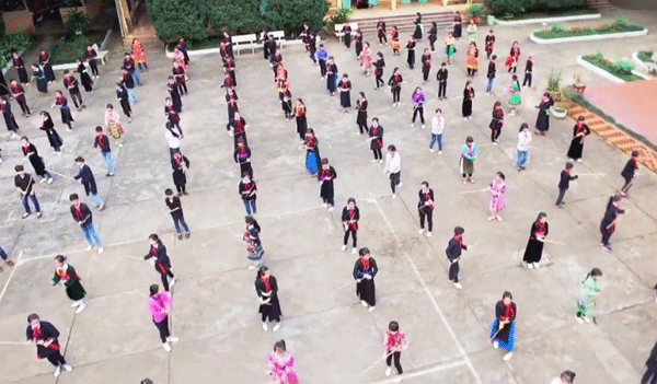 Điệu "Múa gậy sinh tiền" của đồng bào Mông được truyền dạy tại trường PTDT Nội Trú Vị Xuyên
