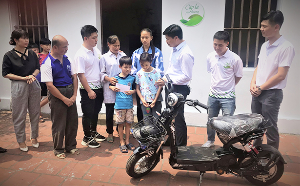 Thông qua chương trình “Cặp lá yêu thương”, công ty Vinamilk và Quỹ sữa Vươn cao Việt Nam đã đến thăm và trao tặng cho gia đình của em Đại những món quà thiết thực với tổng giá trị là 50 triệu đồng, bao gồm: một chiếc xe đạp điện để chị em Đại đi học, gia đình em có thêm phương tiện di chuyển; chiếc bàn học mới và các vật dụng gia đình để ngôi nhà thêm tươm tất; và đặc biệt là một suất học bổng trị giá 35 triệu đồng nhằm động viên Đại và hai chị em yên tâm hoàn thành con đường học tập.