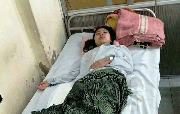 Nguyễn Thị Mai khi đang điều trị tại Bệnh viện Đa khoa tỉnh Vĩnh Phúc