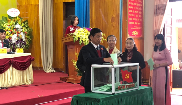 Các đại biểu bỏ phiếu bầu Ban Chấp hành Đảng bộ phường lần thứ V, nhiệm kỳ 2020-2025