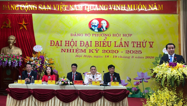 Bí thư Thành ủy Vĩnh Yên Phạm Hoàng Anh (ảnh trên, ngoài cùng bên phải) đã phát biểu chỉ đao Đại hội, nêu rõ: Đảng bộ phường Hội Hợp là Đảng bộ lớn của Thành uỷ Vĩnh Yên có 131 đại biểu chính thức đại diện cho 488 đảng viên tham dự Đại hội, được vinh dự chọn làm đại hội điểm để rút kinh nghiệm nhân ra diện rộng toàn Thành uỷ. Đảng bộ phường Hội Hợp trong nhiệm kỳ qua đã lãnh đạo hoàn thành tốt các mục tiêu kinh tế xã hội, góp phần quan trọng xây dựng thành phố Vĩnh Yên "Xanh, sạch, đẹp, văn minh, thanh lịch".