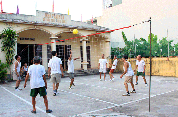 Người dân xã Thanh Vân, huyện Tam Dương thường xuyên đến nhà văn hóa để luyện tập thể thao, nâng cao sức khỏe. Ảnh: Dương Chung