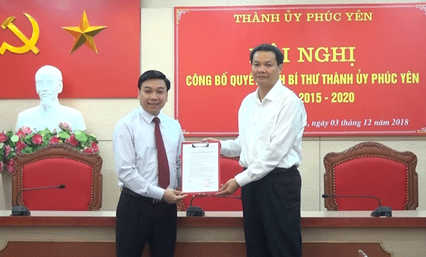 Lãnh đạo Ban Tổ chức Tỉnh ủy đã công bố quyết định số 1288, ngày 20/11/2018 của Ban Thường vụ Tỉnh ủy về việc quyết định điều động, bổ nhiệm ông Nguyễn Văn Mạnh - Tỉnh ủy viên, Phó trưởng Ban Thường trực Ban Tổ chức Tỉnh ủy, tham gia Ban Chấp hành, Ban Thường vụ và giữ chức Bí thư Thành ủy Phúc Yên.