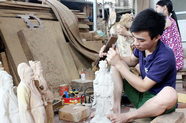 Xưởng sản xuất mộc mỹ nghệ thị trấn Thanh Lãng, Bình Xuyên, Vĩnh Phúc. Ảnh Toàn Nguyễn