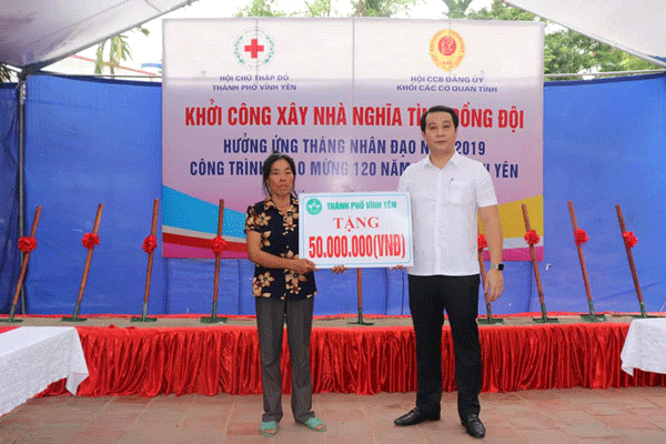 Sáng 27/5, Hội Chữ thập đỏ (CTĐ) thành phố Vĩnh Yên phối hợp với Hội CCB Đảng ủy khối các cơ quan tỉnh tổ chức khởi công xây nhà nghĩa tình đồng đội cho CCB Trần Văn Sơn ở TDP Lẻ 1, phường Hội Hợp.