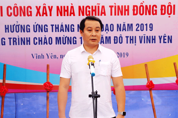 Phát biểu tại lễ khởi công xây nhà nghĩa tình đồng đội, đồng chí Phạm Hoàng Anh, Ủy viên BTV Tỉnh ủy, Bí thư Thành ủy Vĩnh Yên trân trọng cảm ơn các nhà tài trợ, các tấm lòng hảo tâm và đặc biệt là tinh thần tương thân, giúp đỡ của nhân dân trong TDP. Đồng thời, mong muốn những nghĩa cử cao đẹp đó được nhân rộng trên địa bàn thành phố, giúp những hoàn cảnh khó khăn vươn lên trong cuộc sống. Đồng chí Bí thư Thành ủy đề nghị cấp ủy chính quyền phường Hội Hợp cần quan tâm hơn nữa đến các đối tượng chính sách trên địa bàn, thực hiện tốt công tác an sinh xã hội, giúp đỡ người có hoàn cảnh khó khăn có thêm động lực vươn lên trong cuộc sống.