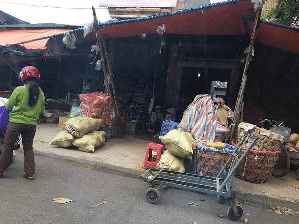 Lối vào trong chợ để mua bán rất tối, bên ngoài nước thải ứ đọng bốc mùi