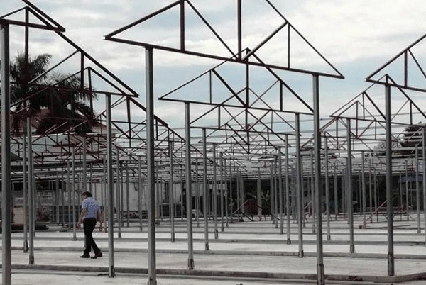 Một góc chợ tam đang được dựng lên.