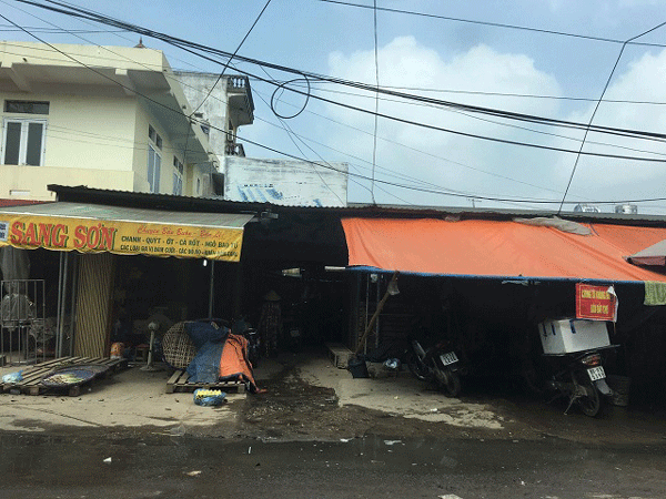 Các kiot bên ngoài đượccác tiểu thương che đậy bằng bạt nhếc nhác.
