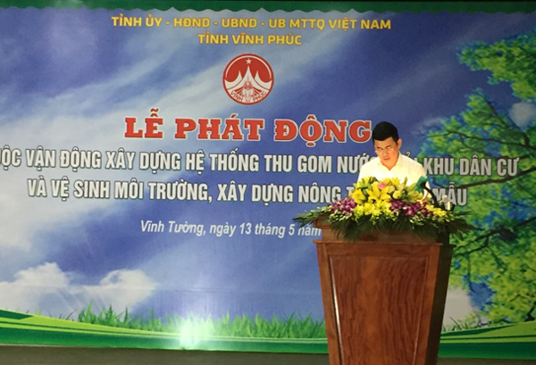 Sáng 13/5/2019, tại Hội trường UBND xã Nghĩa Hưng, huyện Vĩnh Tường (Vĩnh Phúc) Tỉnh ủy, HĐND, UBND tỉnh Vĩnh Phúc tổ chức lễ phát động cuộc vận động xây dựng hệ thống thu gom nước thải khu dân cư và vệ sinh môi trường, xây dựng nông thôn mới kiểu mẫu.