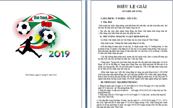 Điều lệ giải đấu "Vĩnh Thành Cup 2019"